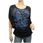 Plus size top features short sleeves with wide openings. Scoop neck desing. Beautiful hypnotic floral print in front. Long tunic design. Polyester blend. Available in Junior plus size 1XL, 2XL, 3XL. Available in Black and Gray.